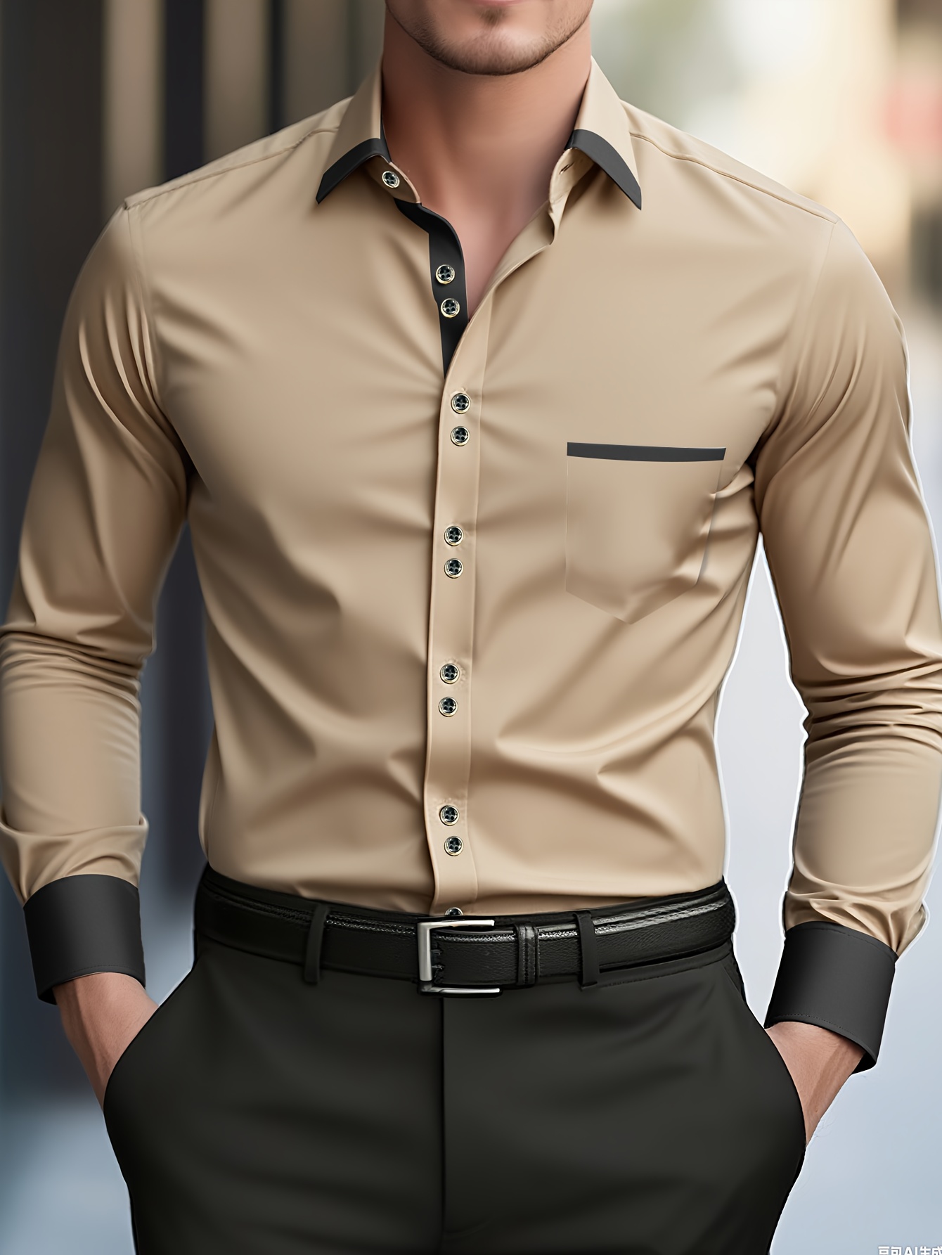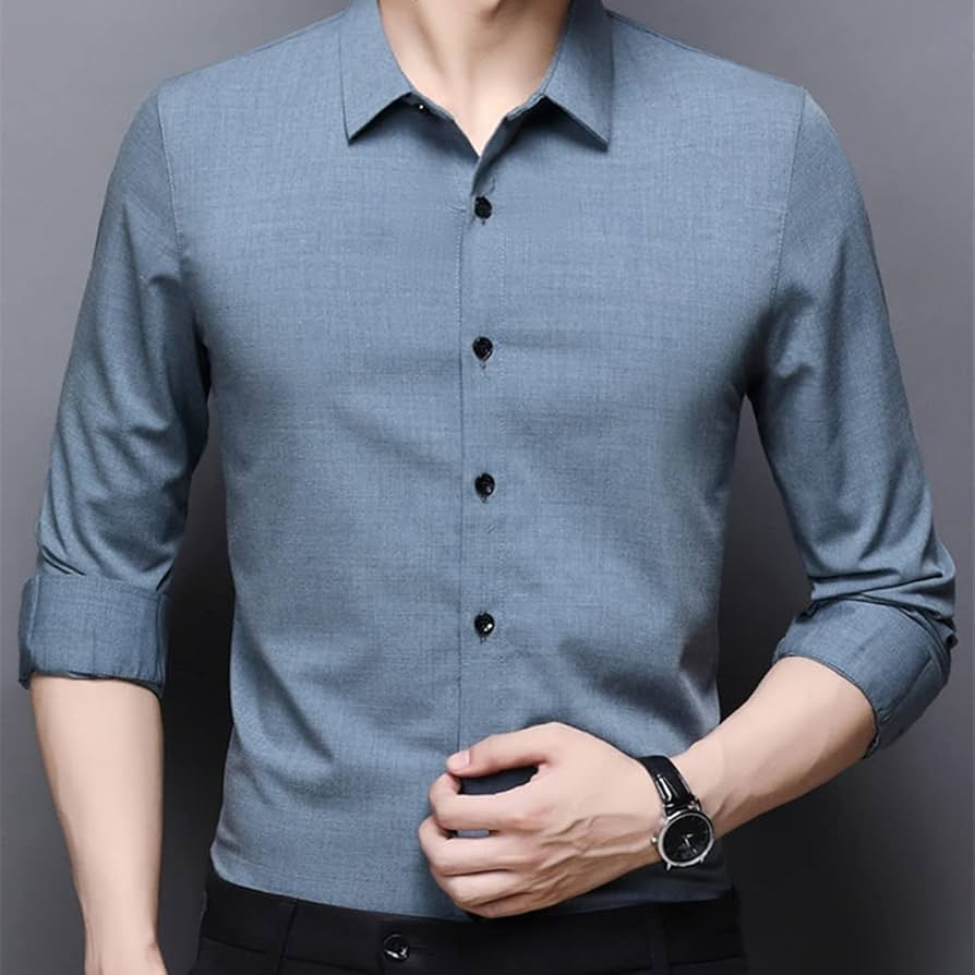 STRAW Slim Fit Mens Fashion Dress Shirts Formal Long Sleeve Solid Color Casual Korean Dress Clothes